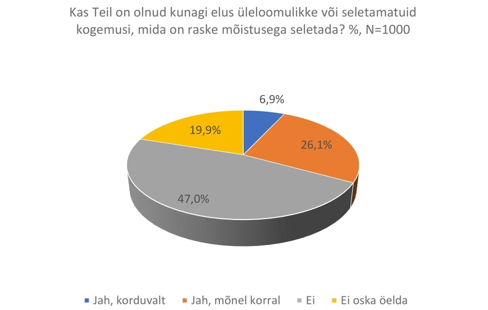 Nagu graafikult nähtub, on koguni kolmandikul vastanutest olnud elu jooksul üleloomulikke kogemusi, mida nad mõistusega seletada ei oska.